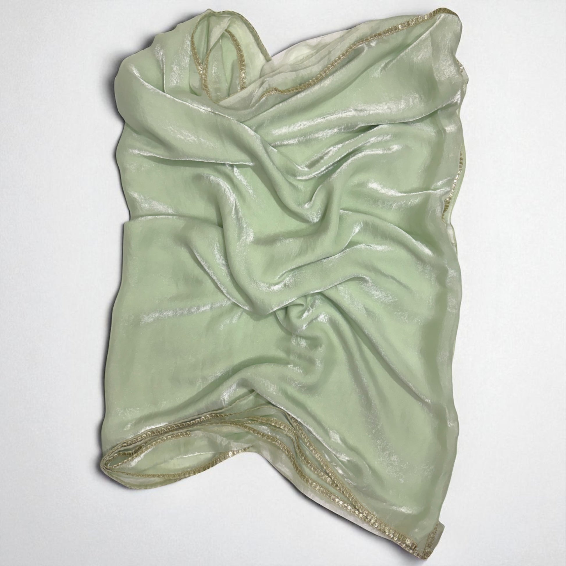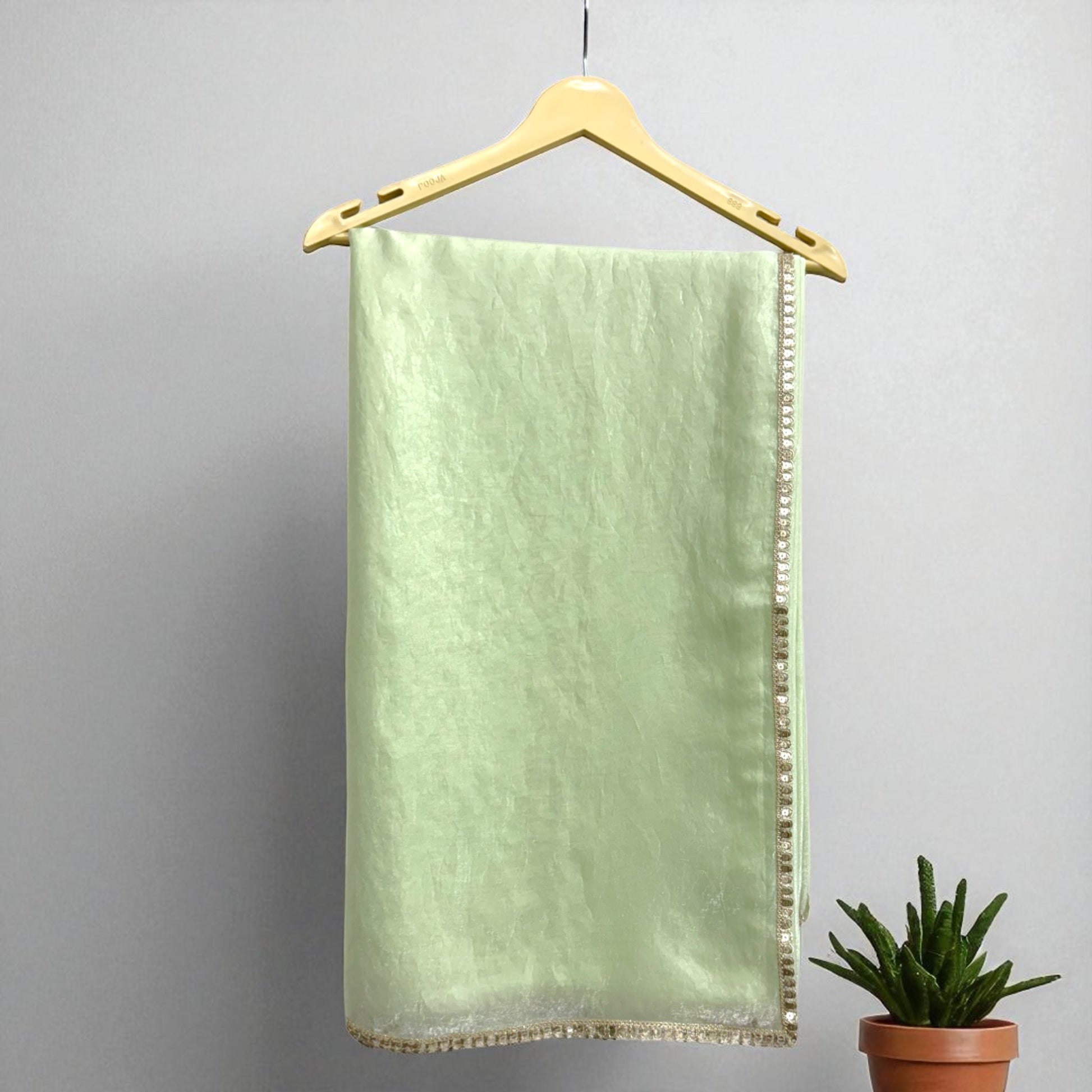 - Saree Fabric: Soft blend in mint green with a subtle sheen